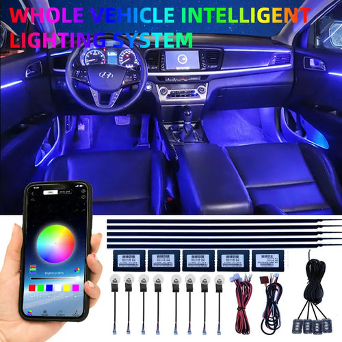 18 In 1 LED Car Ambient Lights Interior LED Acrylic Strip Light RGB 64 Color Light Guide Fiber Optic Decoration Atmosphere Lamp