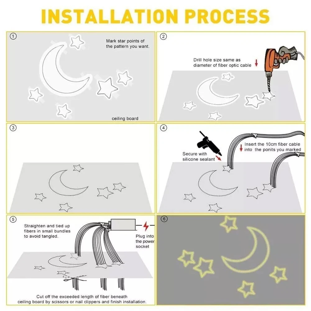 1.High-Quality Fiber Optics: Our transparent optic star ceiling light is crafted with superior quality fibers, providing a source of various colors through the RGBW bead light source for a mesmerizing effect.