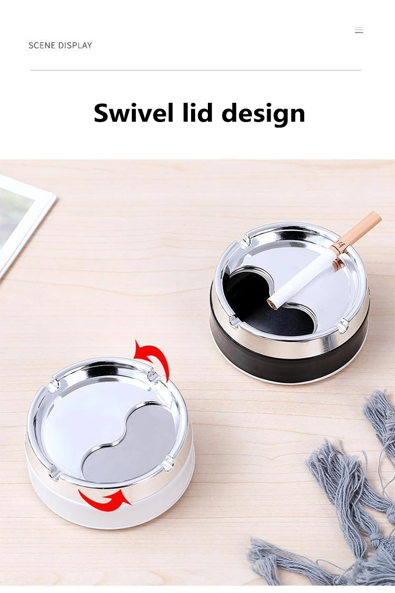 1PC Car Ashtray Sealed Stainless Steel Rotating Ashtray with Lid Windproof Thickened Car Dust Storage Box Home Office Ashtray