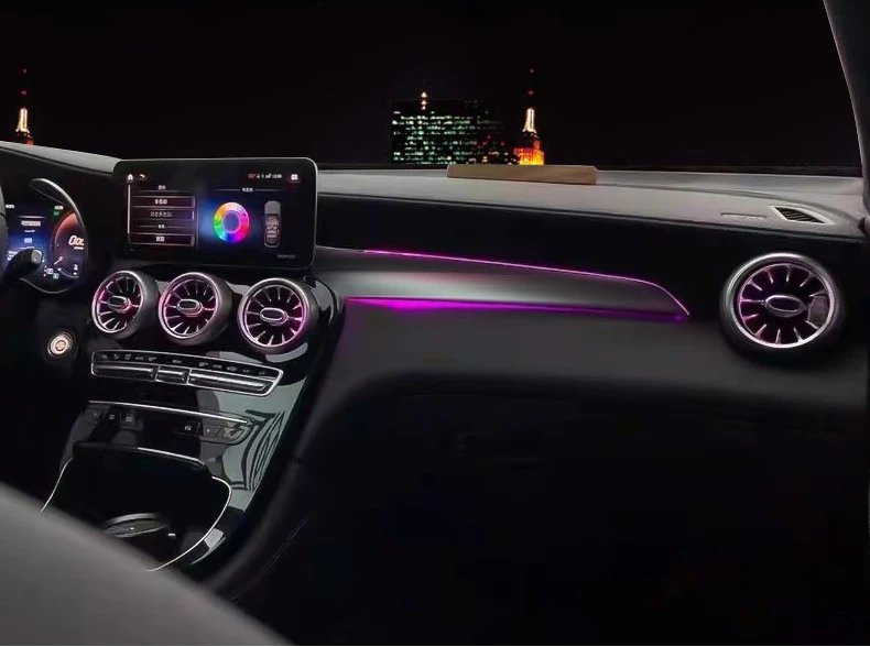 3/64 Color For Mercedes-Benz C/GLC class W205 X253 LHD Co-pilot Led Neon Ambient Light Passenger Atmosphere Lamp Dashboard 15-21