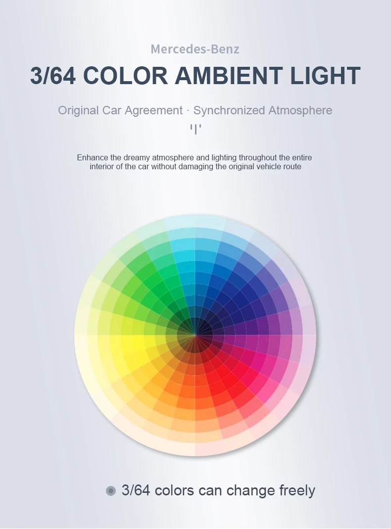 *64 colors are used in conjunction with the air outlet or the rear-modified ambient light. (If you have the original car 64 colors ambient light, you need to purchase a controller.)