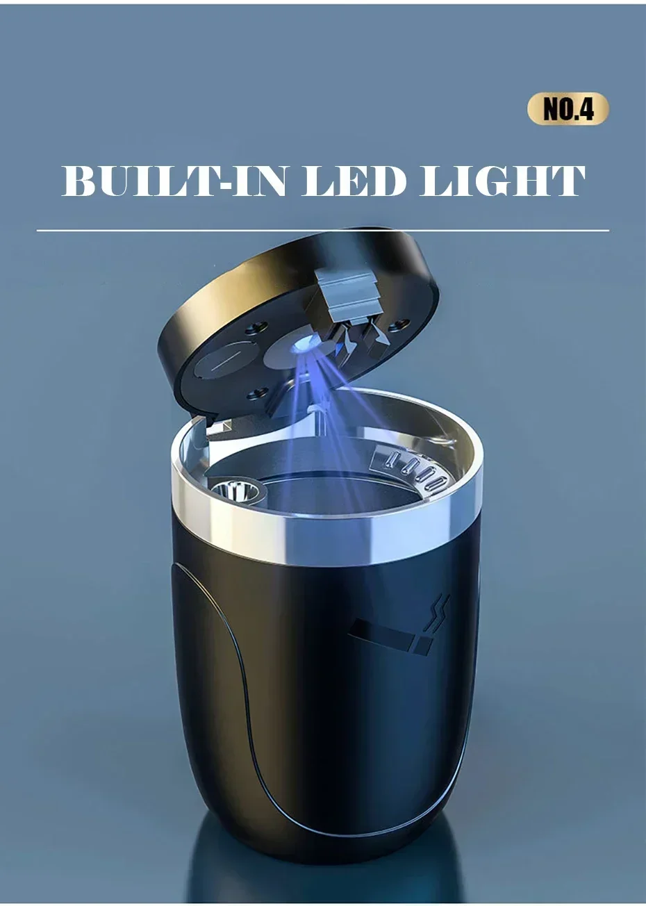 Car Ashtray With LED Light Universal Alloy Ash Tray Aluminum Cup Smokeless Auto Ashtray Flame Retardant Cigarette Holder Box
